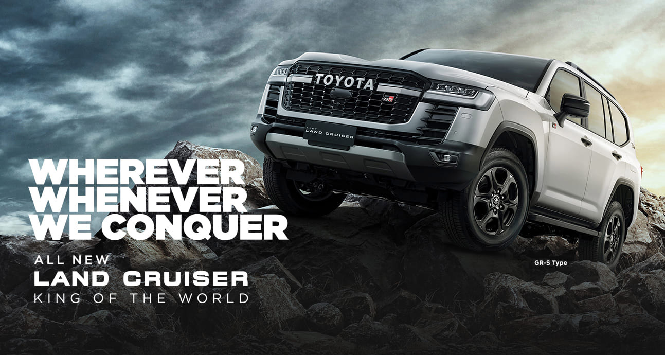Toyota Land Cruiser memiliki tampilan yang lebih gagah dan siap dibawa ke segala medan. Untuk pasar Indonesia, pilihan model Premium SUV yang ditawarkan adalah All New Land Cruiser VX-R untuk pemilik yang menyukai citarasa berkelas, dan All New Land Cruiser GR Sport sebagai flagship untuk pecinta sporty car.